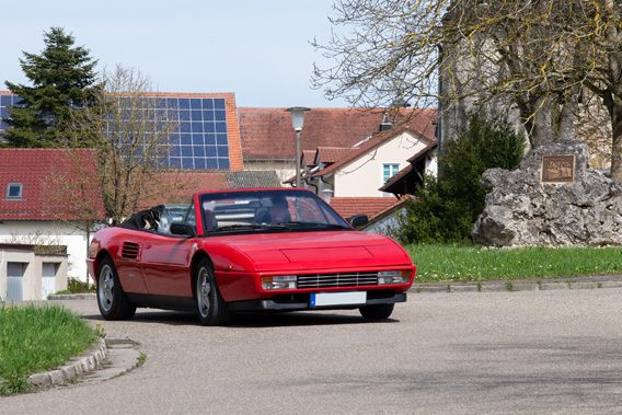 Es ist ein Ferrari Mondial T Cabrio. T steht für trasversal (quer eingebautes Getriebe) als Unterschied zur 1.Gen. Mondial.
