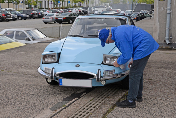 Bei einem Zwischenstop einer Oldtimerrallye steht unauffällig in der